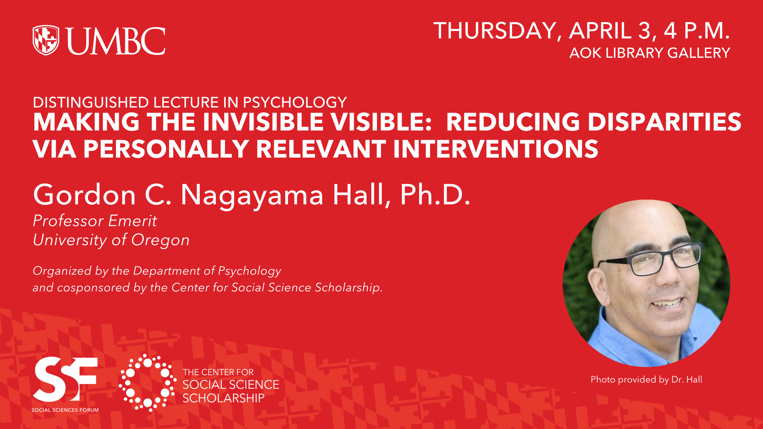 Dr. Gordon C. Nagayama Hall, former Professor of Psychology at Kent State University and Pennsylvania State University, and psychologist at Western State Hospital in Washington state. Dr. Hall recently retired from the University of Oregon, leaving behind his esteemed position as a Professor of Psychology and Associate Director of Research in the Center on Diversity and Community. Dr. Hall received his B.S. in psychology at the University of Washington, Seattle in 1977, and his Ph.D. in clinical psychology from Fuller Theological Seminary in 1982. Since obtaining his degree, Dr. Hall has made remarkable contributions to the field of psychology through extensive leadership and scholarship.