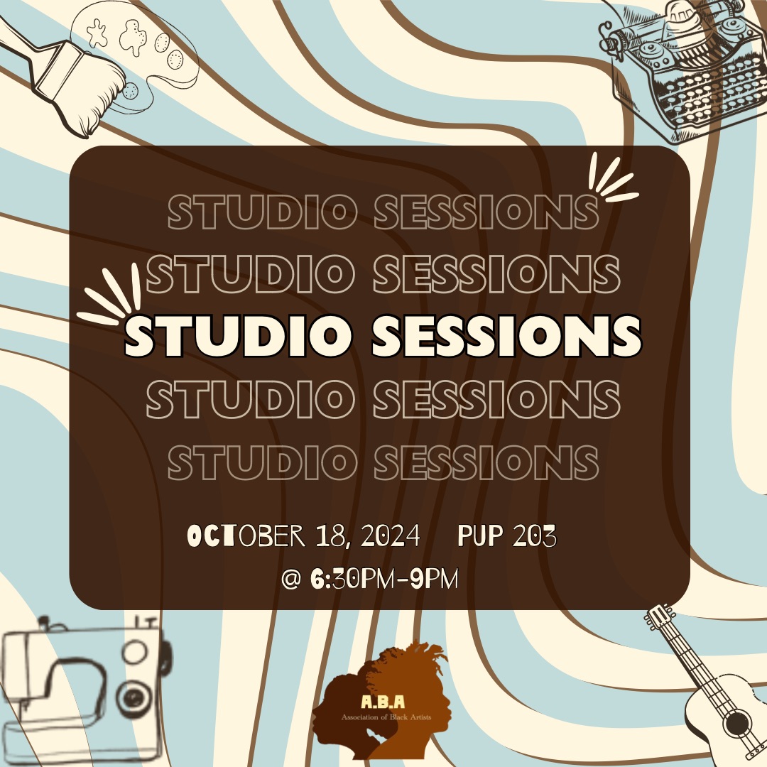 ABA’s next studio session of the semester is THIS FRIDAY at PUP 203! If you’re looking for a place to make new friends, work on your creative projects, or just unwind from the week; Studio Sessions is a designated time you can sit down and work on any personal projects you have!