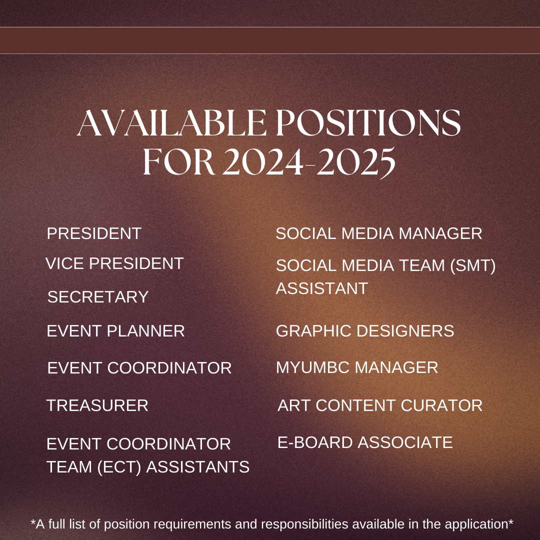 Application is available via the link on our instagram(@umbcaba) bio or under "Files" in our myUMBC.
