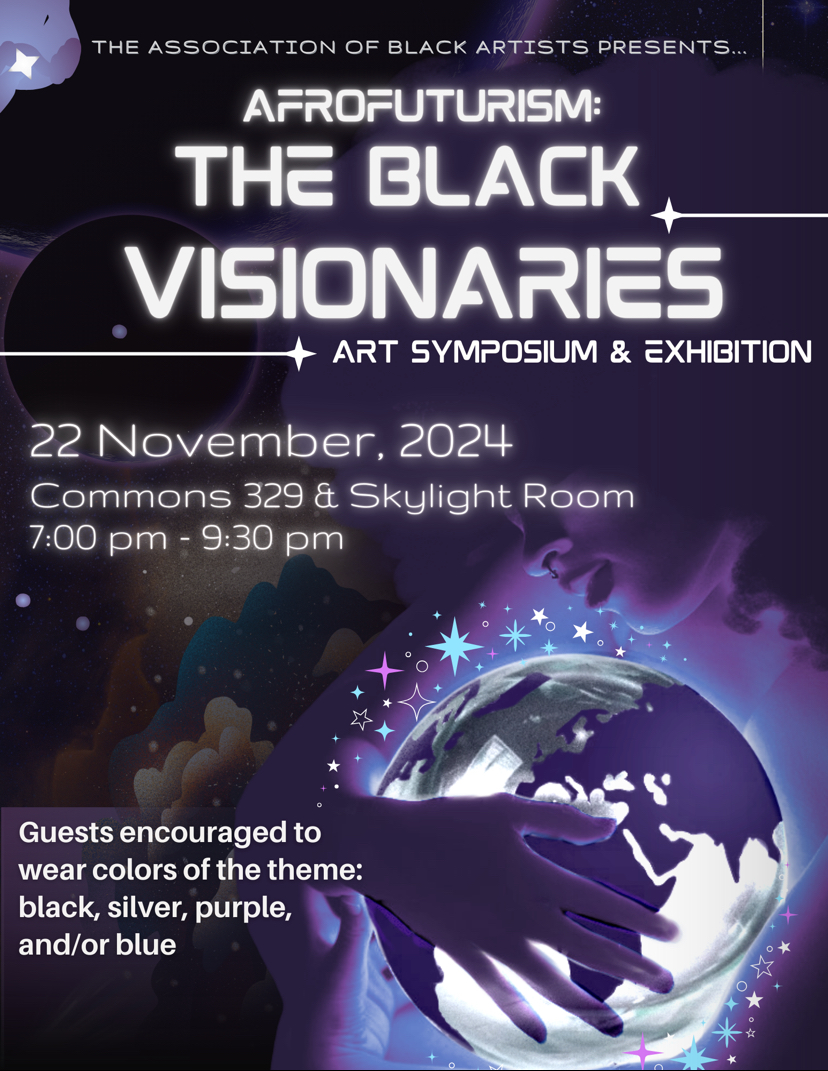 Don’t forget! Association of Black Artists Annual Art Symposium & Exhibition is THIS FRIDAY, NOVEMBER 22ND from 7-9:30PM in COMMONS Skylight and Room 329. From painting, singing, animation, dance, and much more, Come enjoy a night of celebrating UMBC’s own black artists and their work!