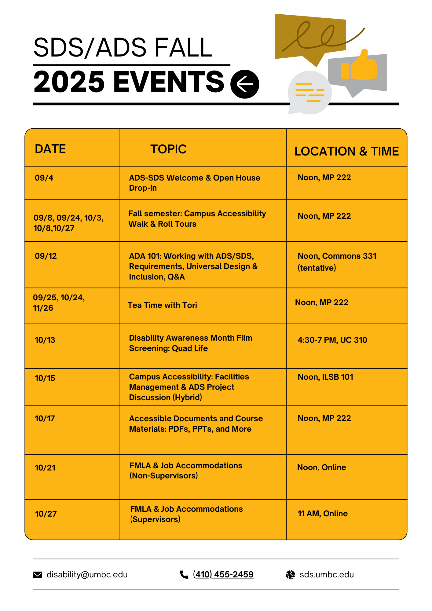 Contact us: disability@umbc.edu | (410) 455-2459 | sds.umbc.edu