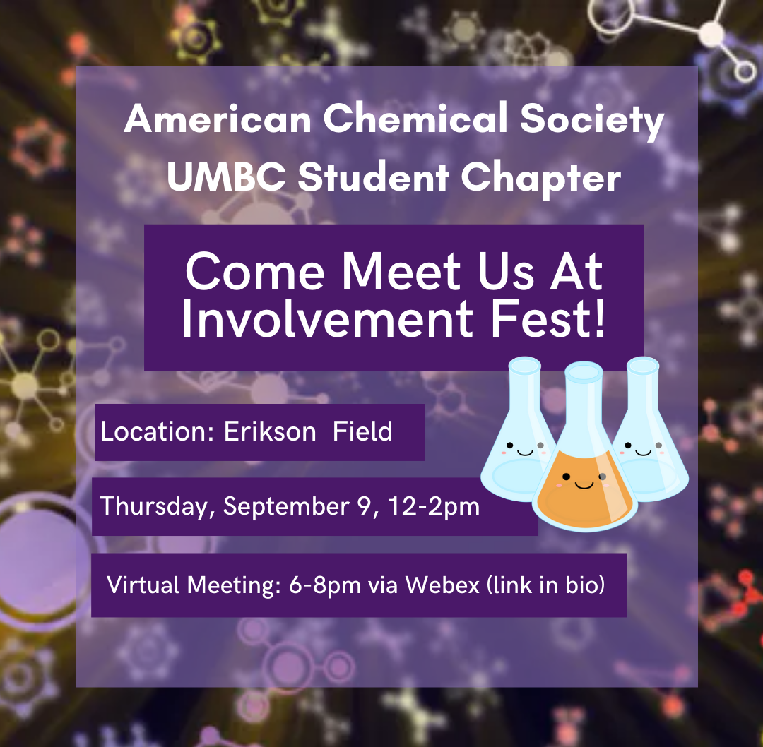 The UMBC Chemistry/Biochemistry Council of Majors will have an in-person involvement fest this Thursday, September 9th from 12-2pm.