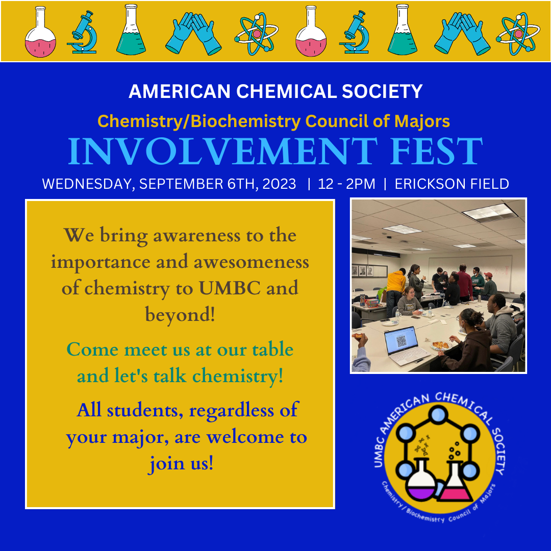 Greetings as we begin a brand-new semester! The UMBC Chemistry/Biochemistry Council of Majors is all set to jumpstart a series of General Body Meetings (GBMs).