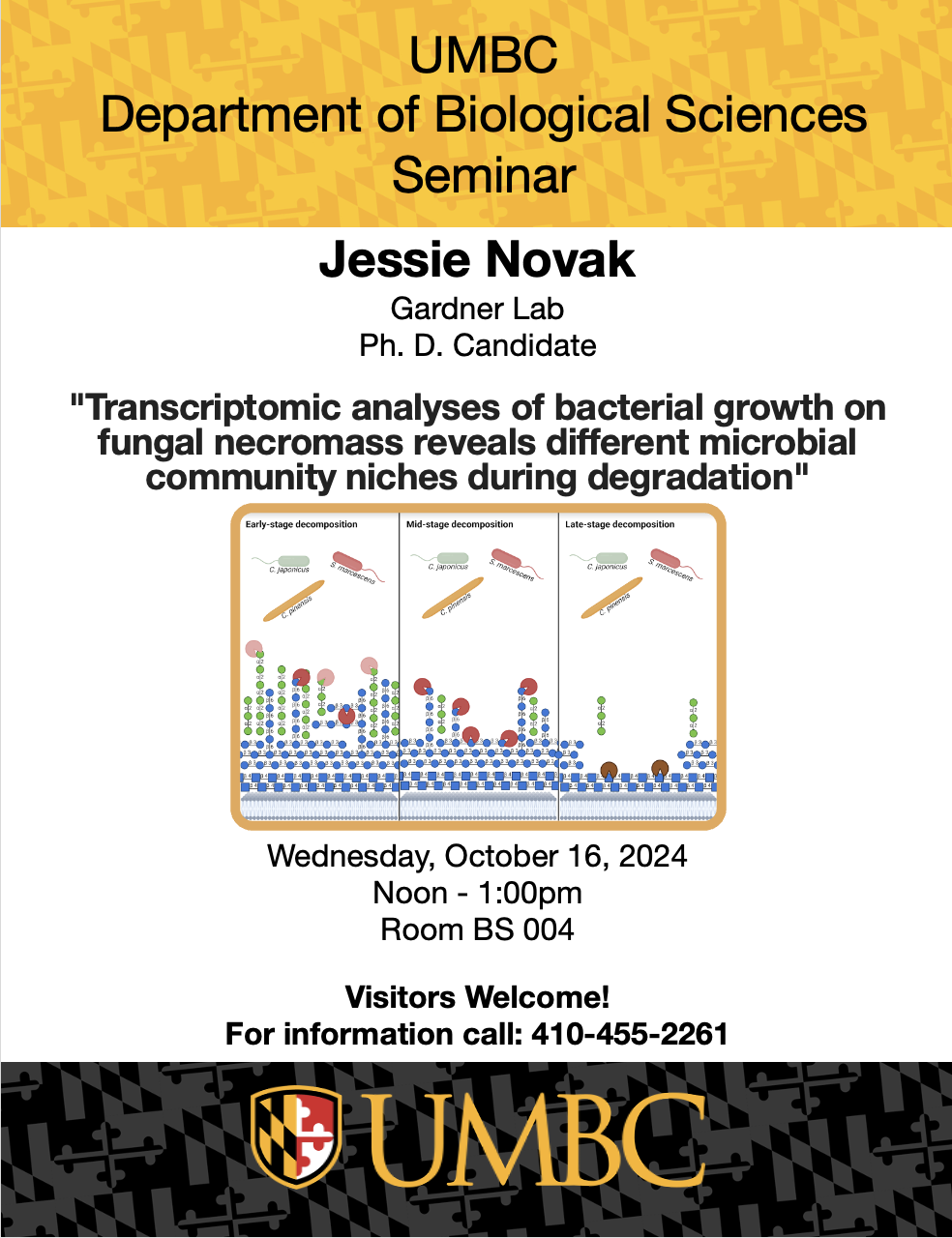 Jessie will present, "Transcriptomic analyses of bacterial growth on fungal necromass reveals different microbial community niches during degradation".