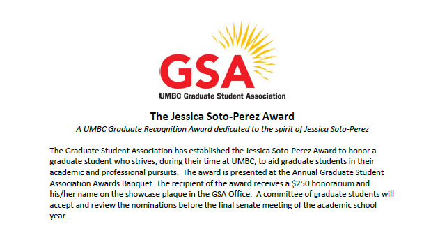 The Jessica Soto-Perez Memorial Award honors a graduate student who not