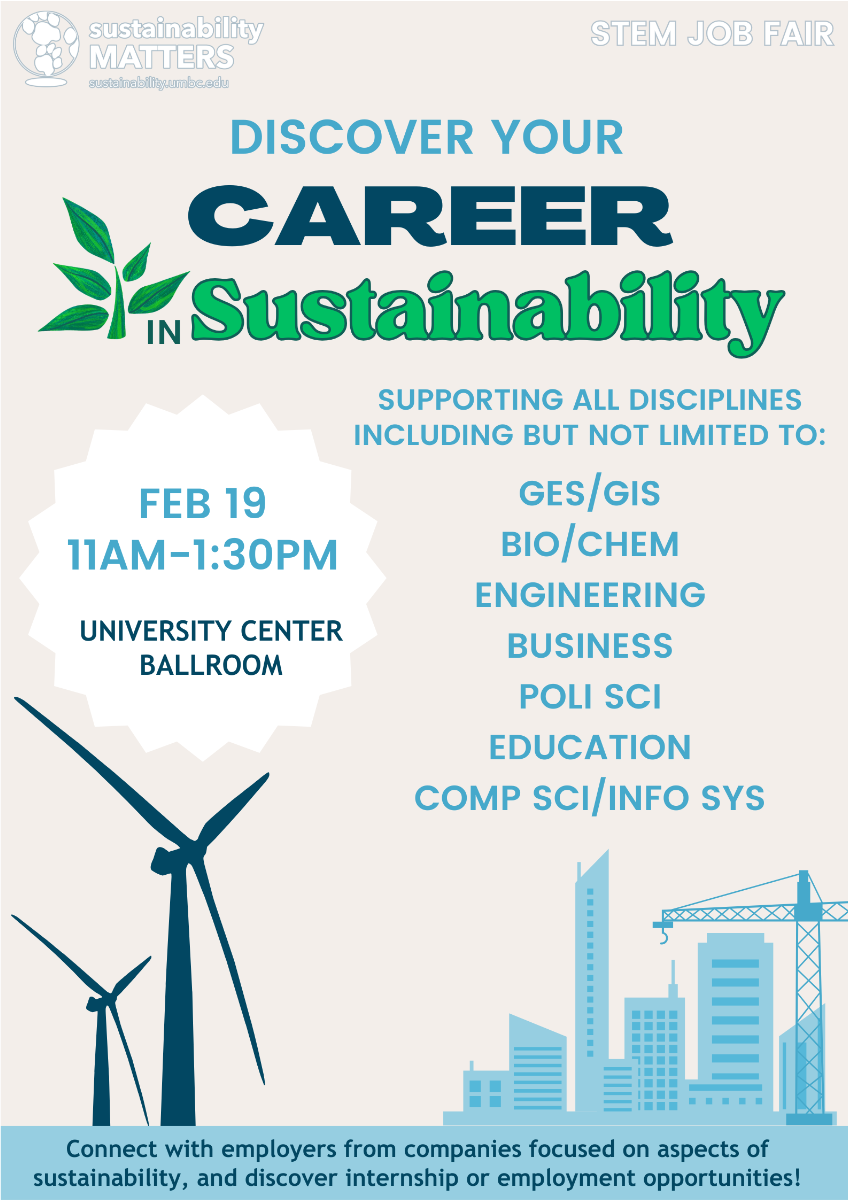Stop by the career fair this Wednesday, February 19th from 11:00 - 1:30 in the UC Ballroom with your resume and a
