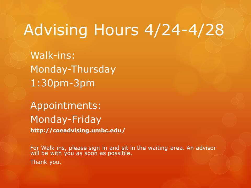 Advising Hours April 24th-28th