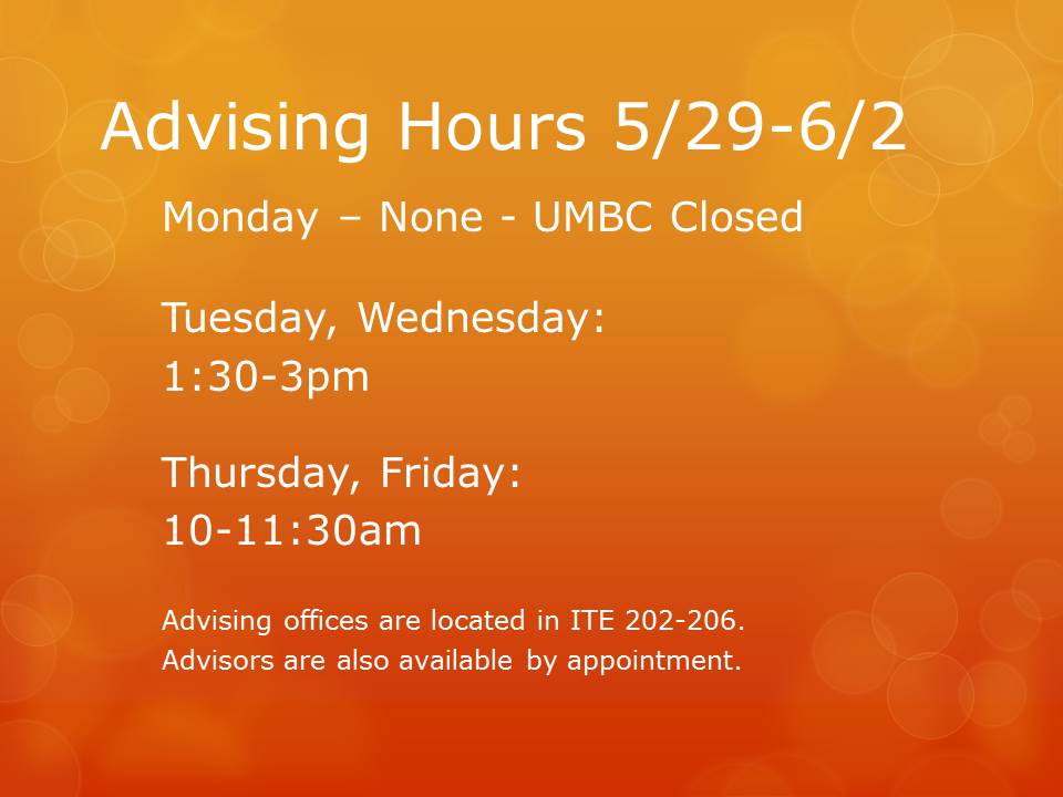 Advising Hours May 29th-June 2nd