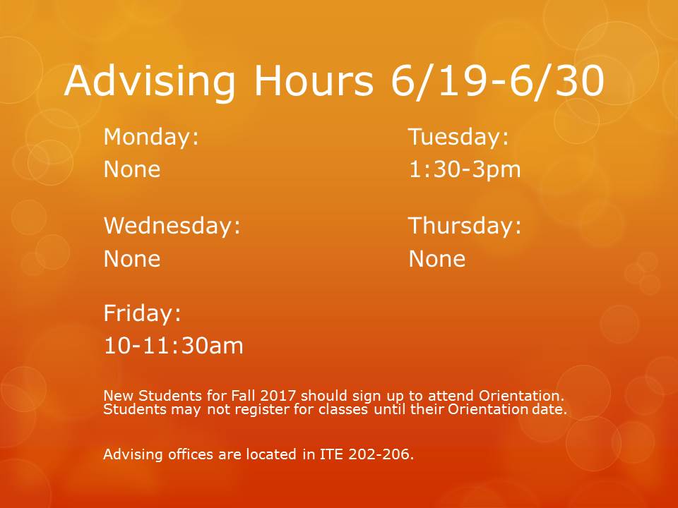 Advising Hours June 19th-30th