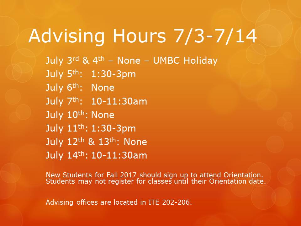 Our advising offices are located in ITE 202-206. Email and telephone contact information is available here.