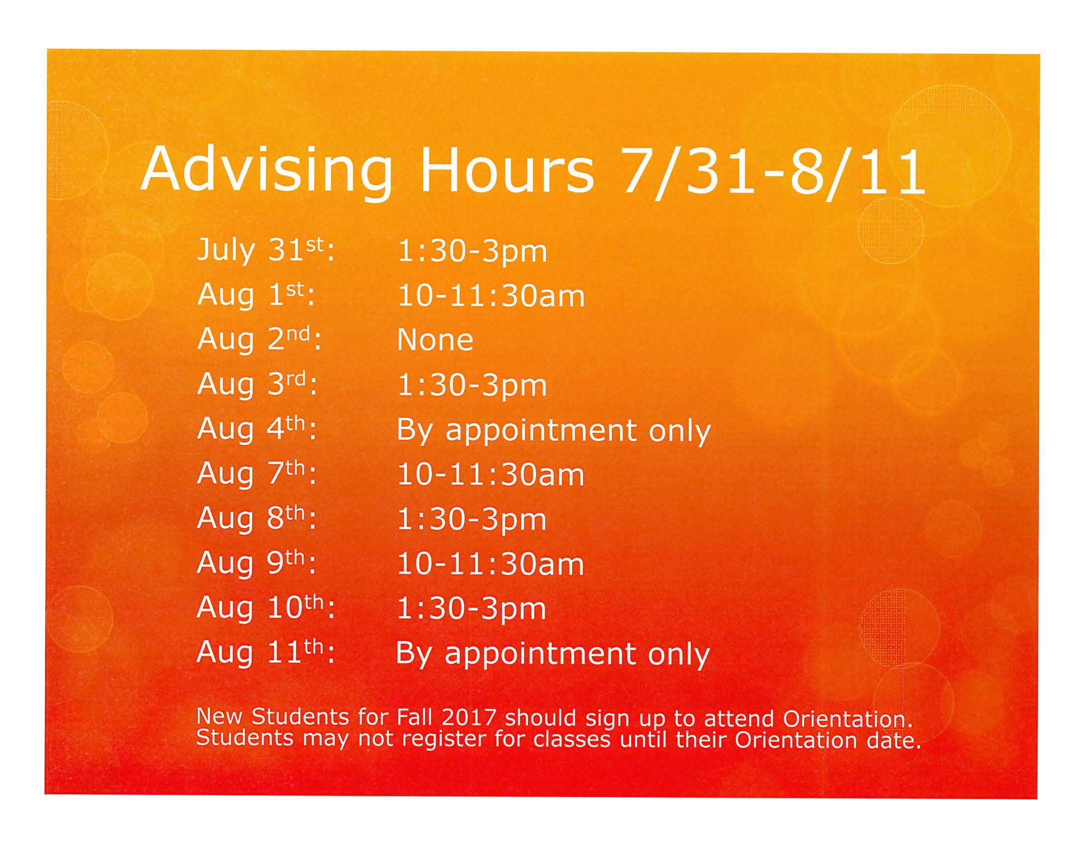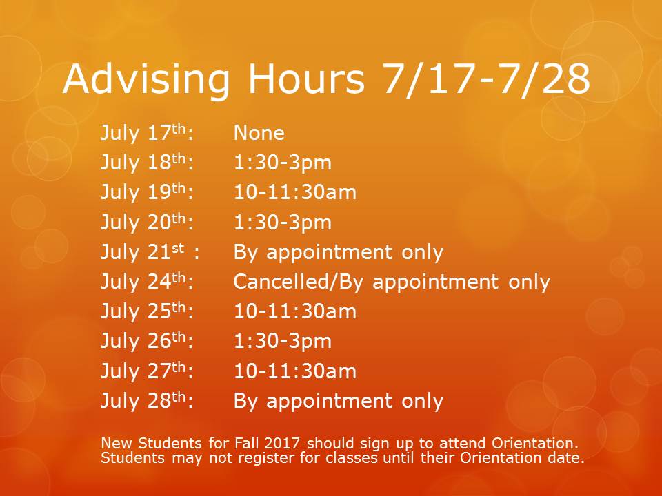 Advising Hours July 31st-August 11th