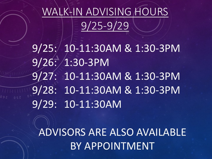 Walk-In Advising Hours September 25th-29th
