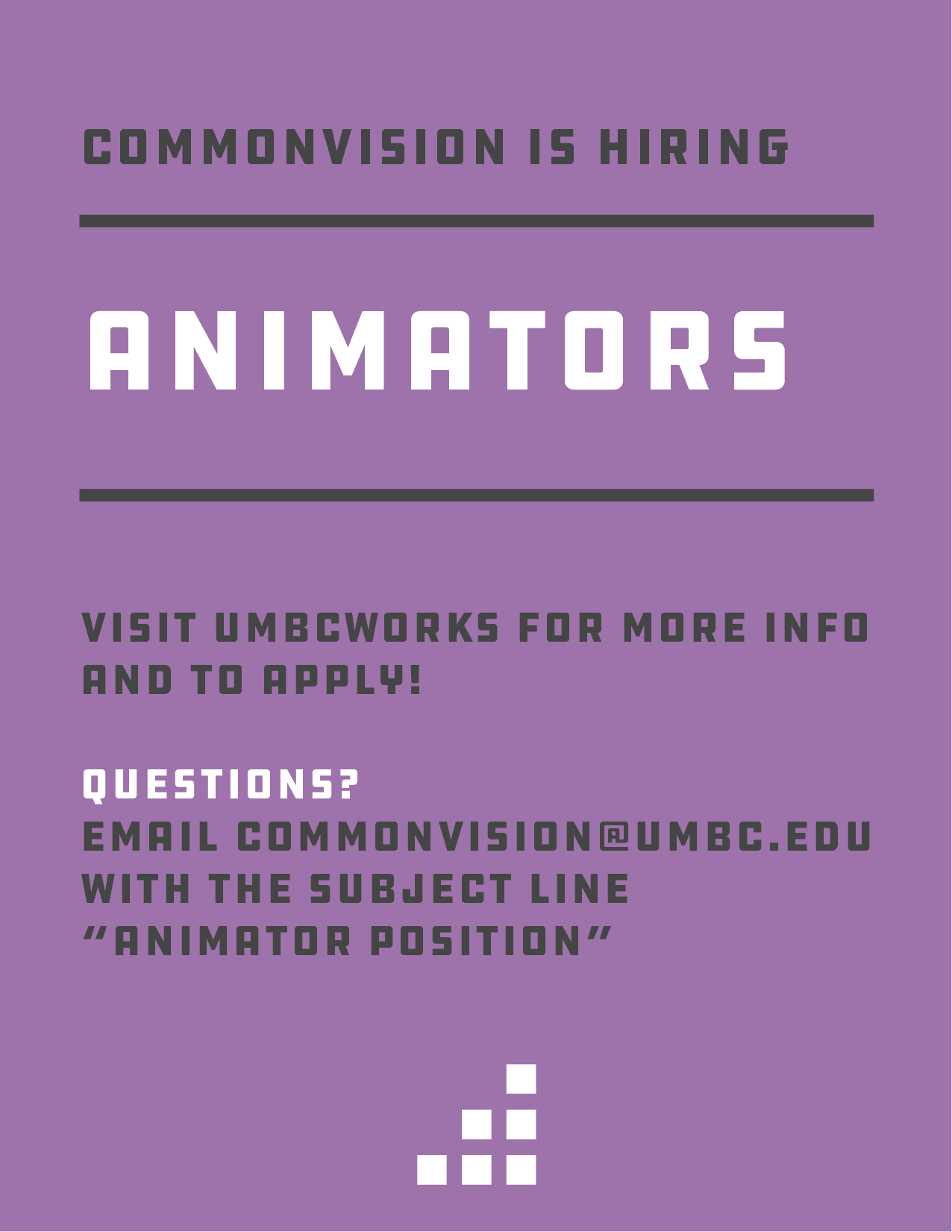 via UMBCworks. Anything you are not able to submit there please e-mail commonvision@umbc.edu with the subject line “iNet Animator Application Summer 2022”.