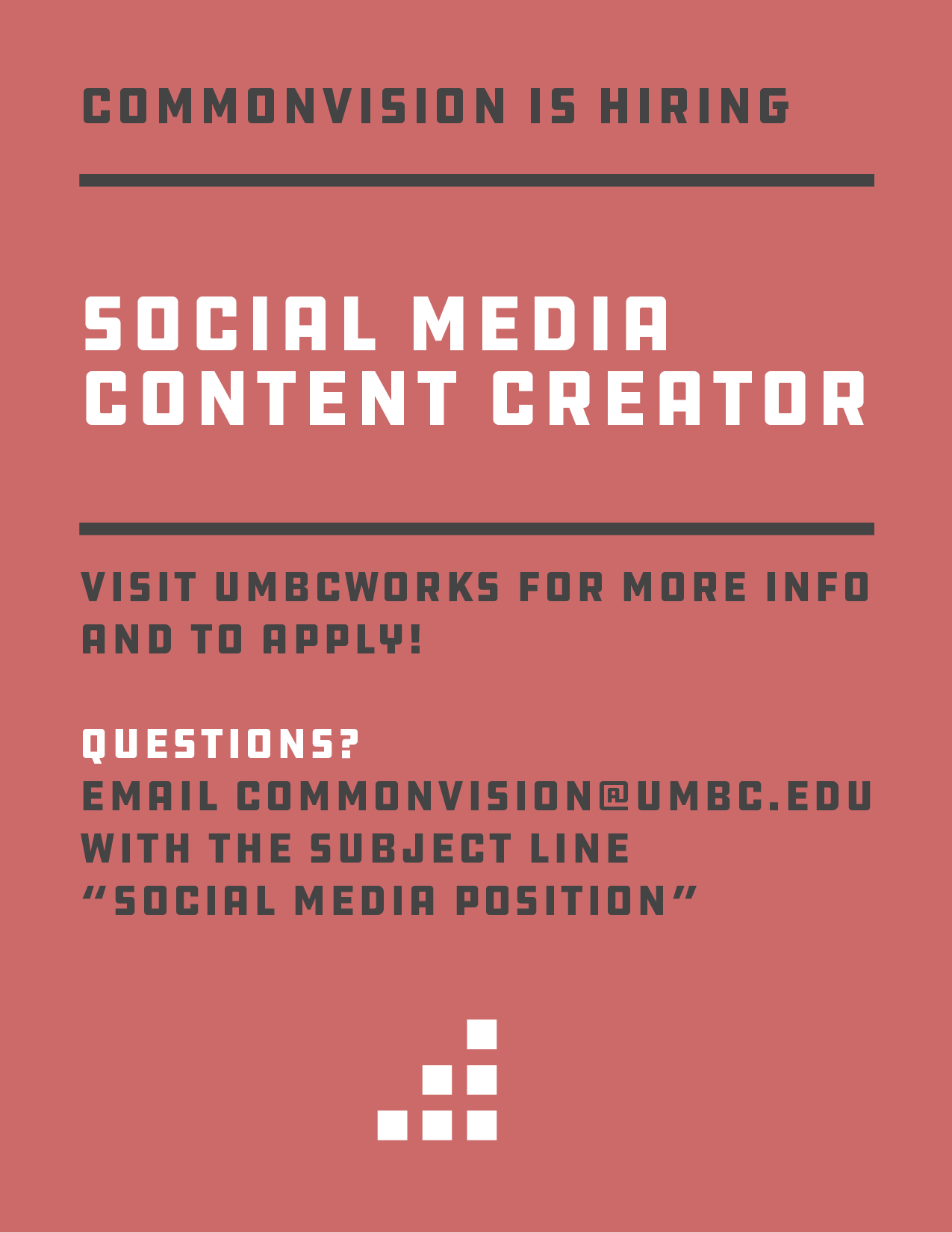 via UMBCworks. Anything you are not able to submit there please e-mail commonvision@umbc.edu with the subject line “commonvision Social Media Application Summer 2022”.