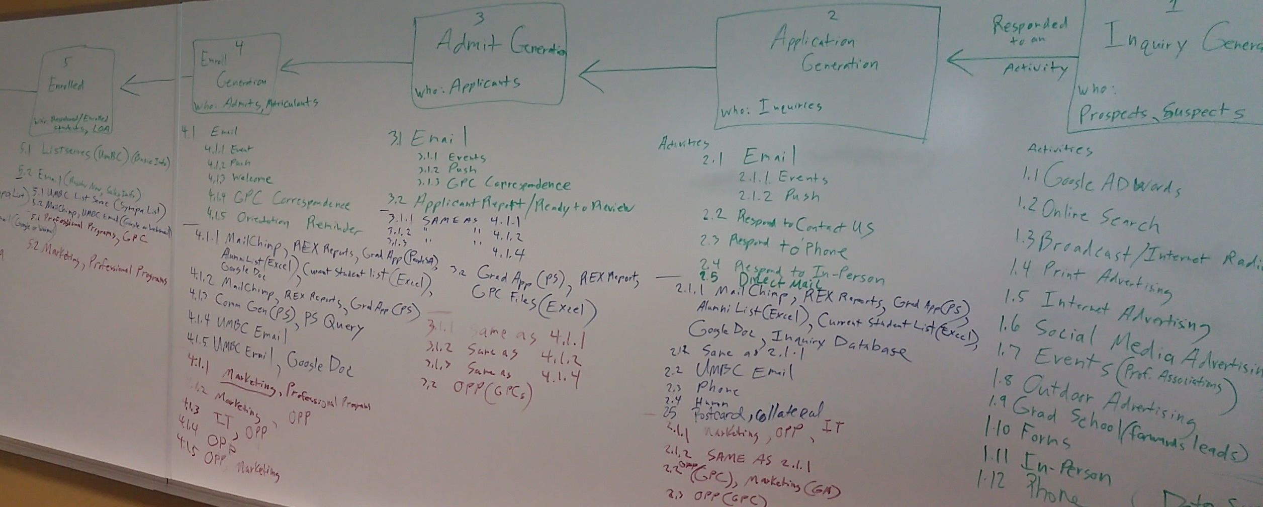 On this date in 2015 some members of DPS traveled to the UMBC Training Centers in Columbia on "mini retreat" to start planning for the possibility of implementing a CRM. This picture shows the whiteboards which stretched almost the length of a classroom that we used to document DPS' current inquiry process and tools. Fast forward approximately 2 years later we which includes The Grad School, Information Systems and DPS are embarking upon implementing a CRM! We still have a ways to go, but hopefully this picture helps us to reflect on how far we've come.