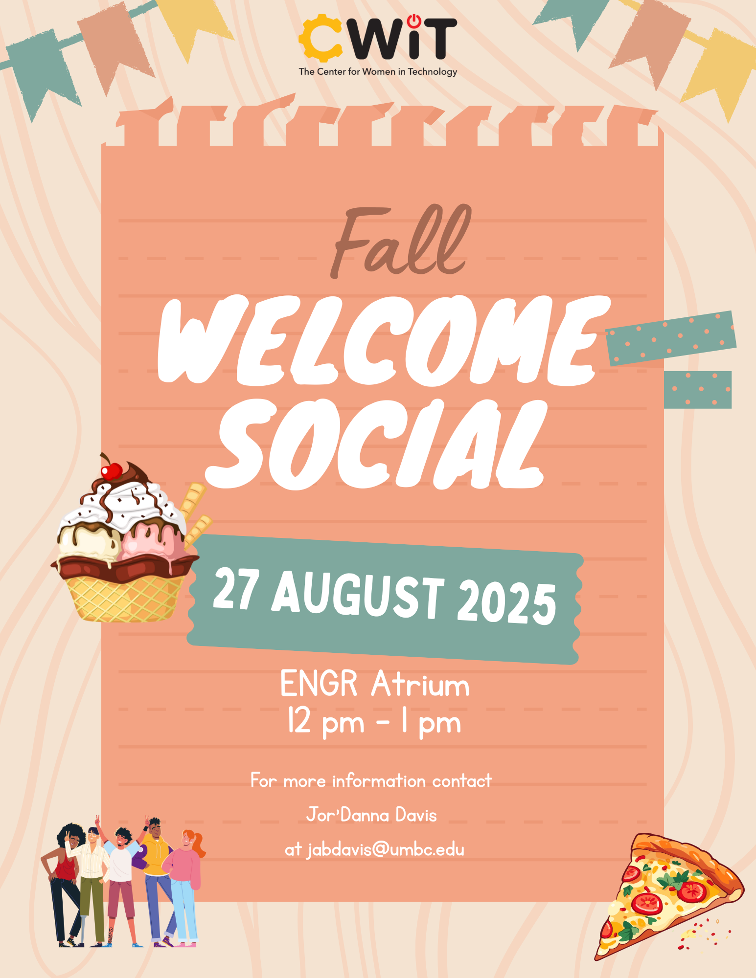 Welcome back CWIT community! We are so excited to see you all again and start the semester off right with the Fall Welcome Social. Looking to connect with new friends? Spend time with old pals? Or maybe just looking for a fun welcome event? Join us as we celebrate new beginnings and continued success.