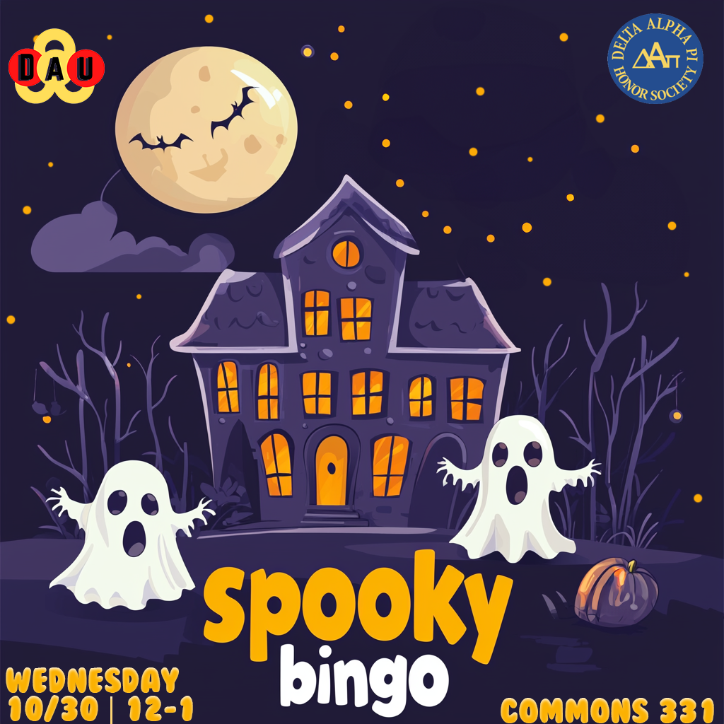 Join the DAU for an afternoon of bingo! Come and enjoy some time with fellow DAU members, and DAPi Honor Soeity members are invited too. You'll have a chance to win prizes! Snacks will be provided and costumes are encouraged, but not required.