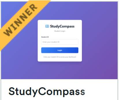 Out of 18 projects, the big winner of the DoIT Data Science track was Ruben Finkel for his project called "StudyCompass." Ruben is a senior at Pikesville High School and is currently applying to computer science BS programs. This was his first hackathon experience, and he was excited to see the whole room full of coders in Engineering Lecture Hall 1. He described the 24-hour hackathon as grueling, intense, and energized by many Red Bulls. Throughout the first hour, he kept coming back to the idea that he wanted to design something that would help students like himself. Then he began building his project off this idea, which developed into his creation of an AI Guidance Counselor.