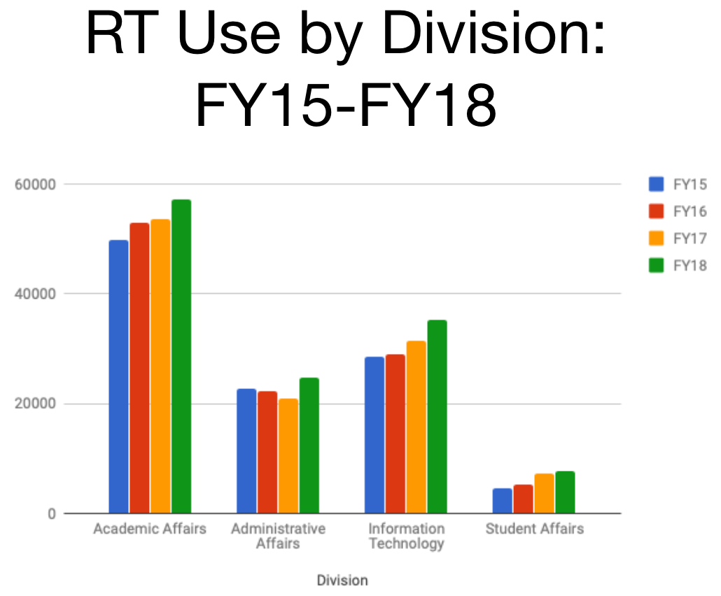 Beyond the ticketing process, DoIT integrated RT with REX to provide valuable analytics about the types of requests being made, including which departments are receiving the most help requests and who is submitting them. Ticket data can be stored securely using box, a cloud computing service, and Google groups allow multiple people in an office to see tickets, a resource that comes in handy if an employee is out for a day or more.