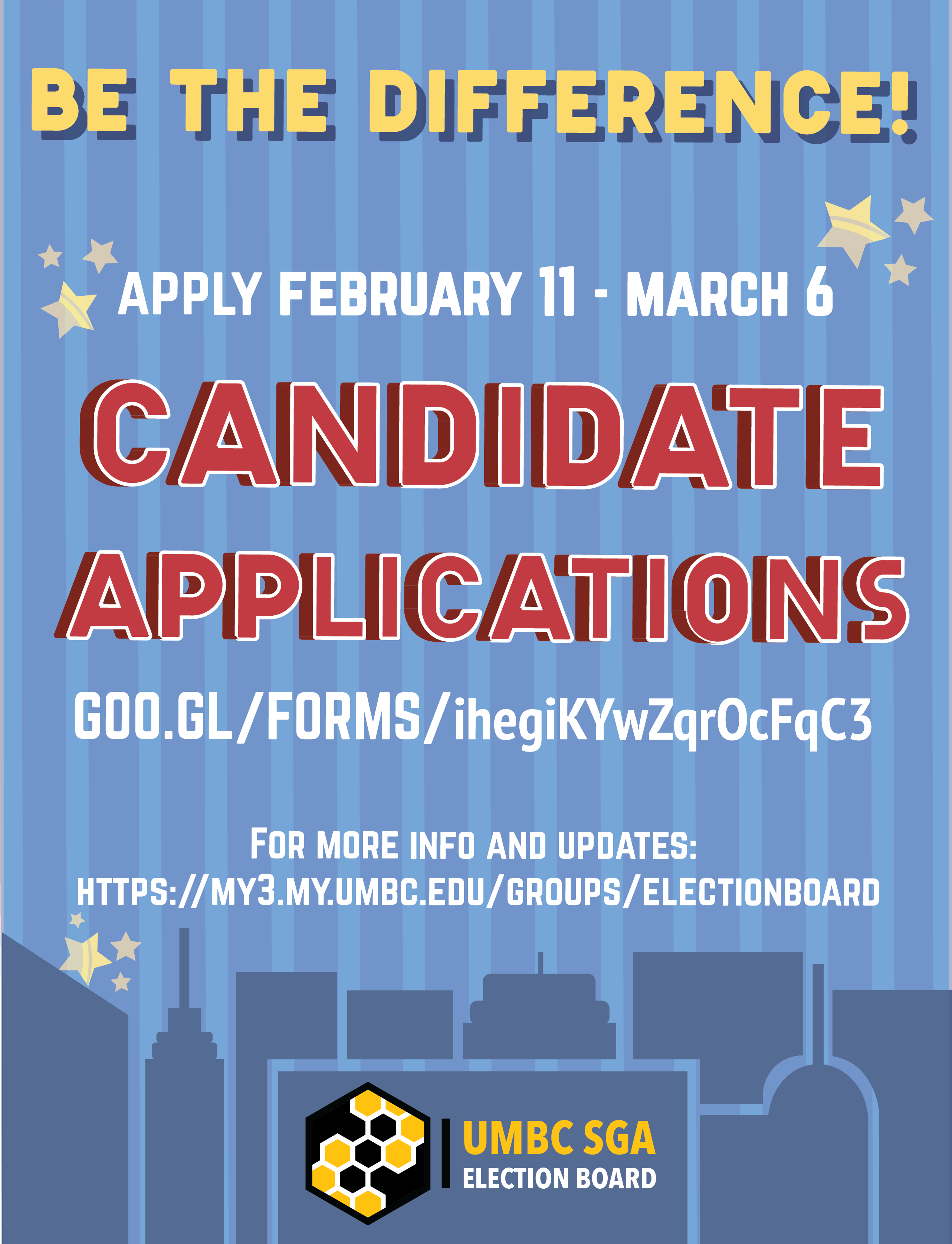 For any questions or concerns, please contact the SGA Election Board Chair, Jessica Kweon (jkweon1@umbc.edu).