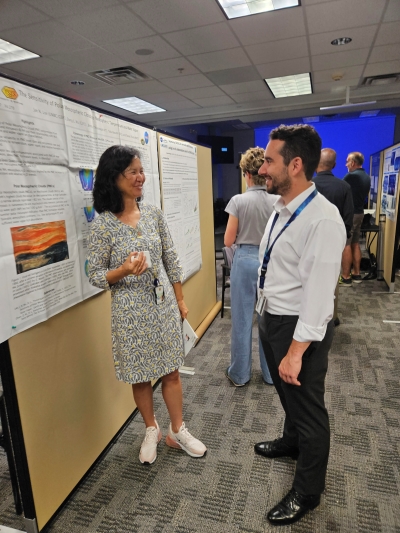 ESI scientists Dr. Brent McBride and Dr. Anin Puthukkudy participated in the GESTAR II Open House at NASA Goddard Space Flight Center on July 23, 2024. Drs. McBride and Puthukkudy discussed recent results from the HARP2 instrument on the NASA PACE mission with fellow GESTAR II scientists, project managers, university representatives, and GSFC student interns at the event.