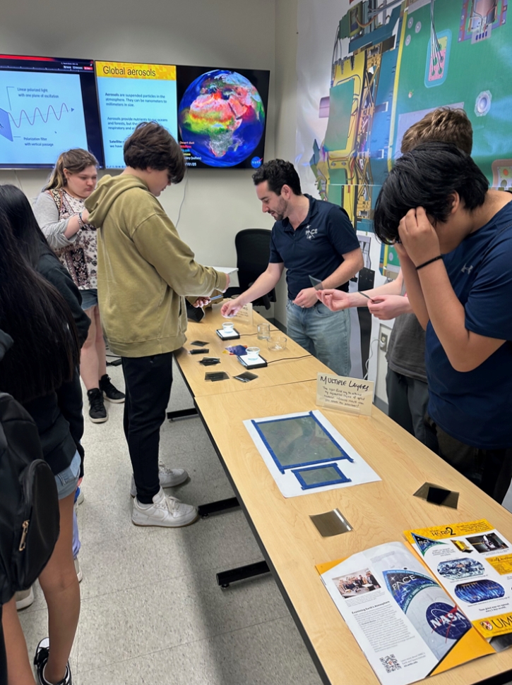 On April 4, 2025, 8th grade students from Queen Anne’s County visited UMBC's campus as part of a broader campus tour. The youth visit was led by Dr. Sarah Gardenghi, Assistant Vice Provost of Educational Pathways and Partnerships at UMBC. The students met with current undergraduate students to hear their perspective on college and participated in an activity related to research going on at UMBC. For the activity, the students visited the Earth and Space Institute, where ESI scientist Dr. Brent McBride demonstrated how climate scientists use light to learn more about Earth’s climate (see photo).