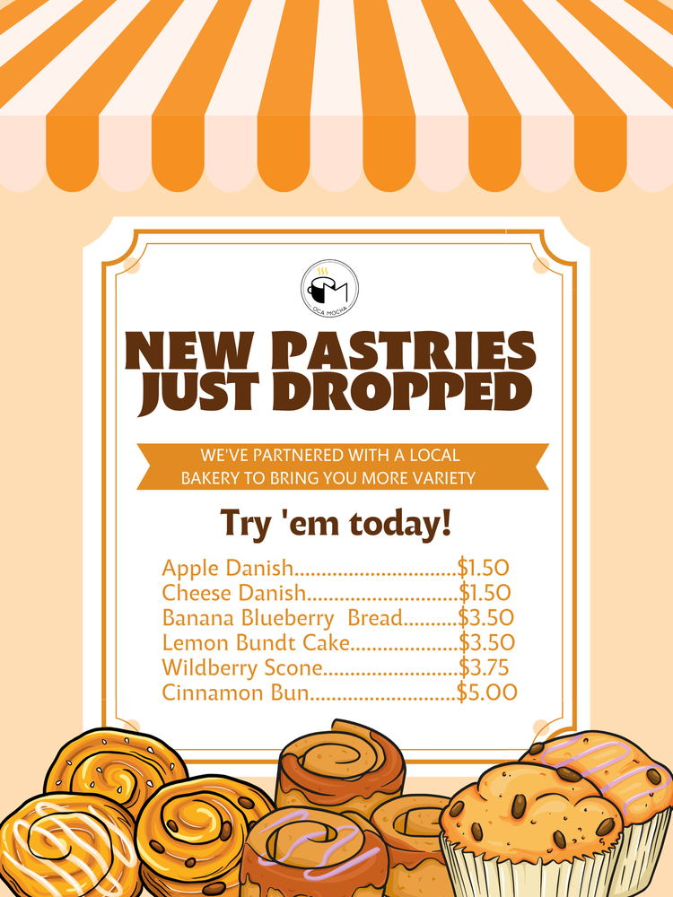 OCA Mocha just announced new pastries - make sure to stop by and try them out! Visit OCA Mocha's website for up-to-date information and their hours.