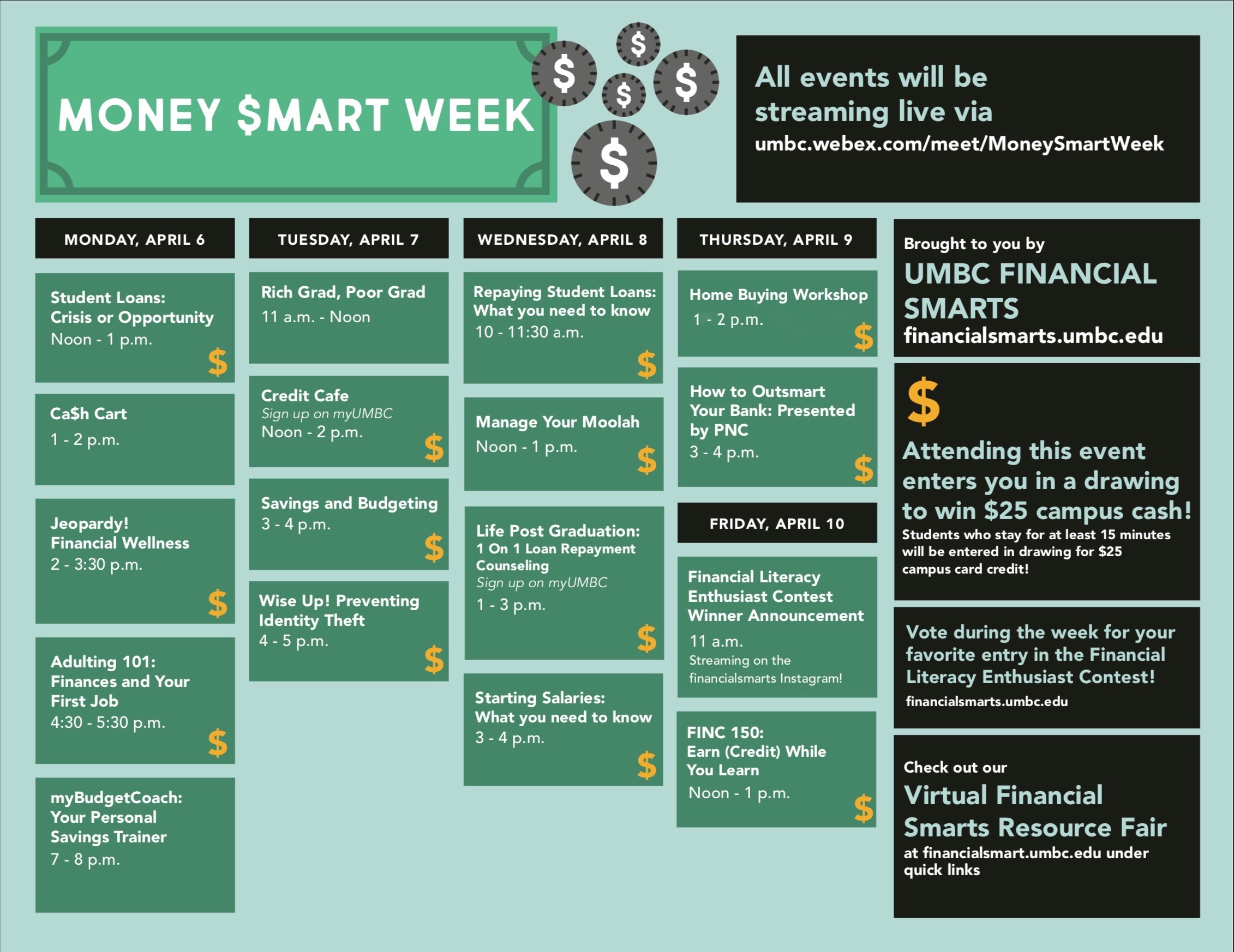 Congratulations to our Day 1 Raffle winners! Muchiri Mbugua, Maxine Akunnakwe, Elsie Mo and Steve Park all won $25 campus cash just by attending a Money Smart Week workshop! Join us today and you could win too!