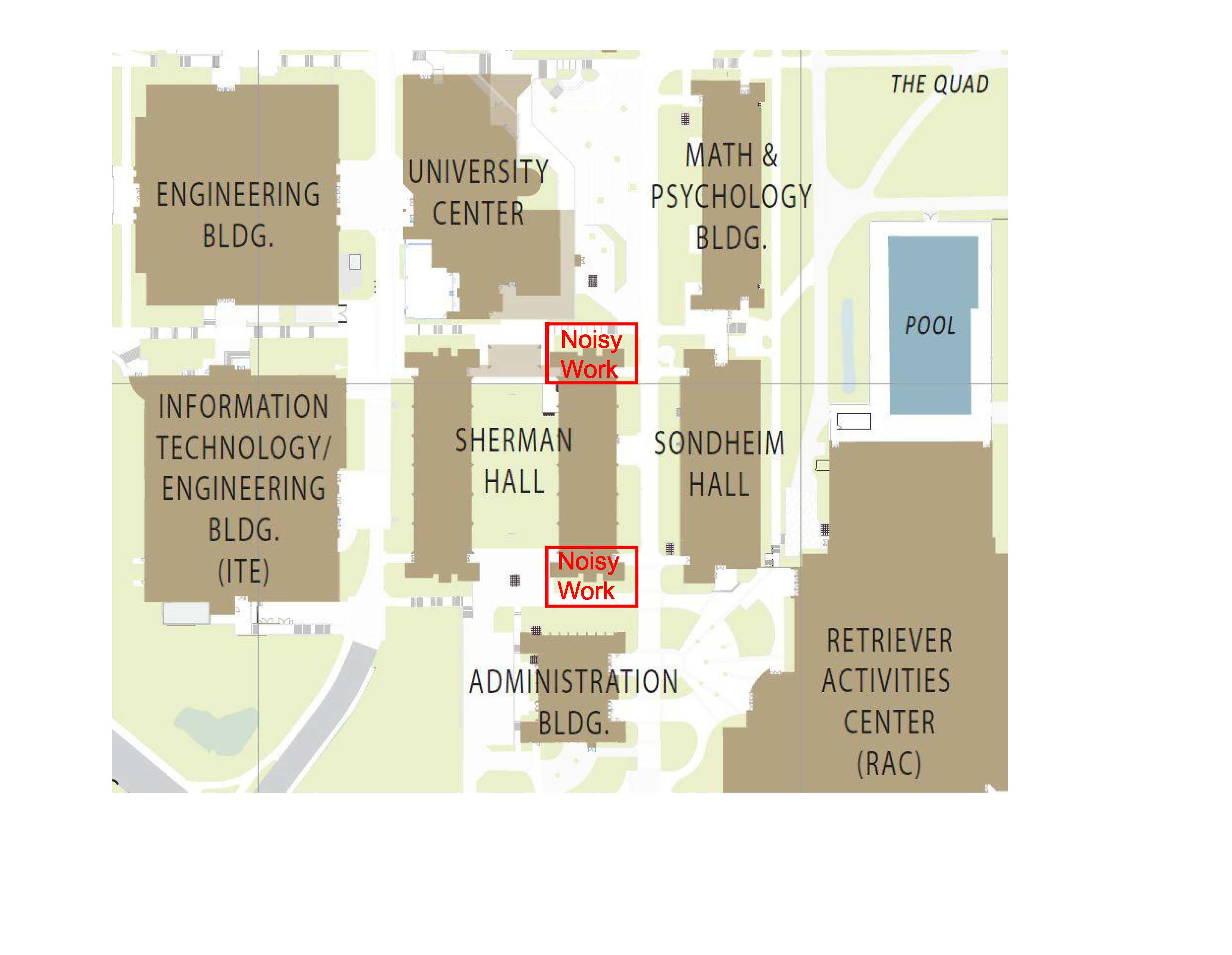 From 10/13 – 11/4: Brick removal will occur on the Sherman Hall Project. This work will generate some periods of intermittent and some periods of consistent noise levels above normal conditions. This may disrupt activities that require very quiet conditions. See the attached and go to the following link for more information: https://fm.umbc.edu/.