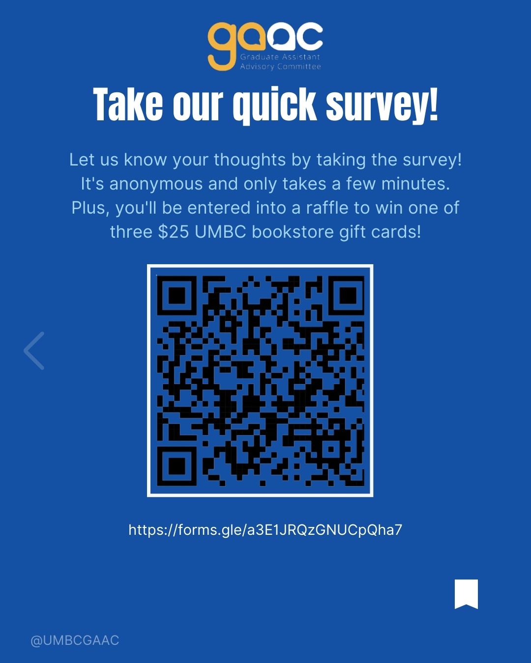 Completing this survey will enter you into a raffle to receive one of three $25 UMBC bookstore gift cards.