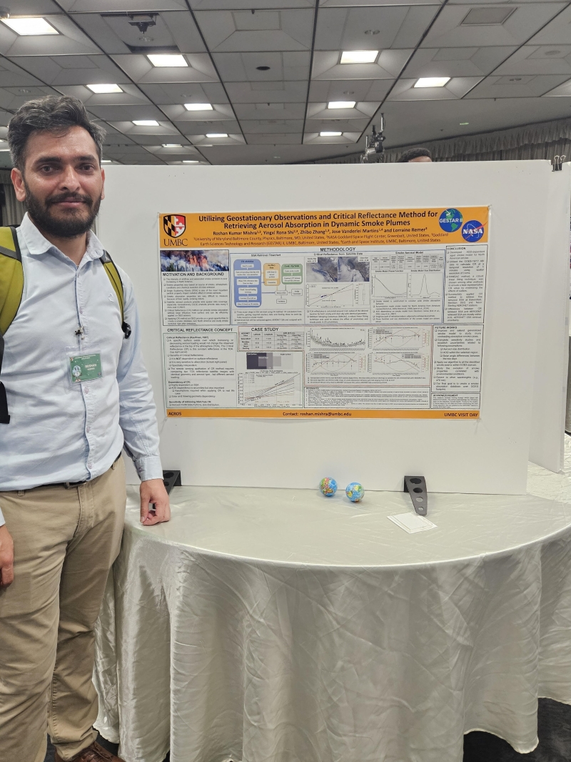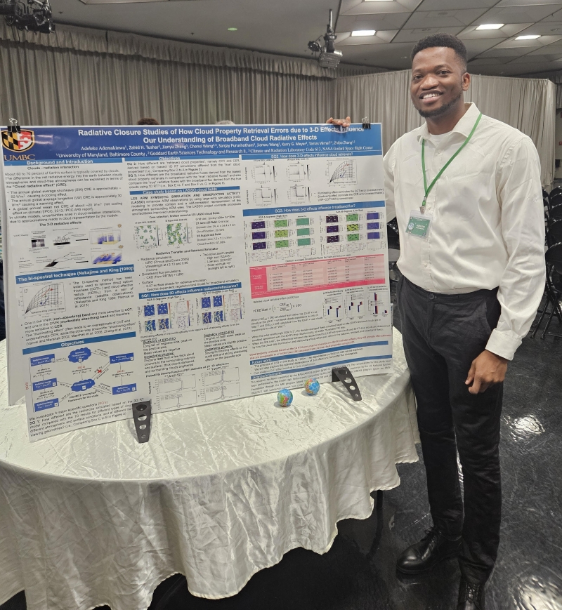 On Monday, April 29th, as part of UMBC's Earth Day Symposium agenda, students presented posters on their research. Among those who presented were four graduate research assistants affiliated with GESTAR II who are working within UMBC's Physics Department. They discussed their research and next steps with attendees to the poster session. Congratulations on your hard work!