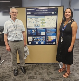 Dr. Nick Krotkov (NASA/GSFC) and Inia Soto Ramos (616/MSU) with a poster by Ocean Ecology Lab members.