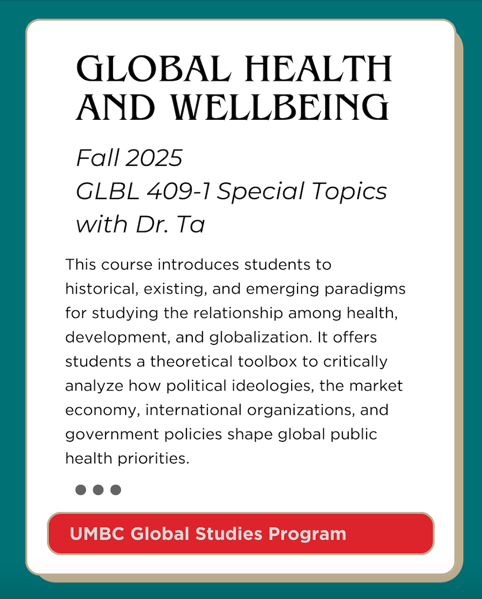 Fall Course Spotlight: GLBL 409-01 Global Health and Wellbeing