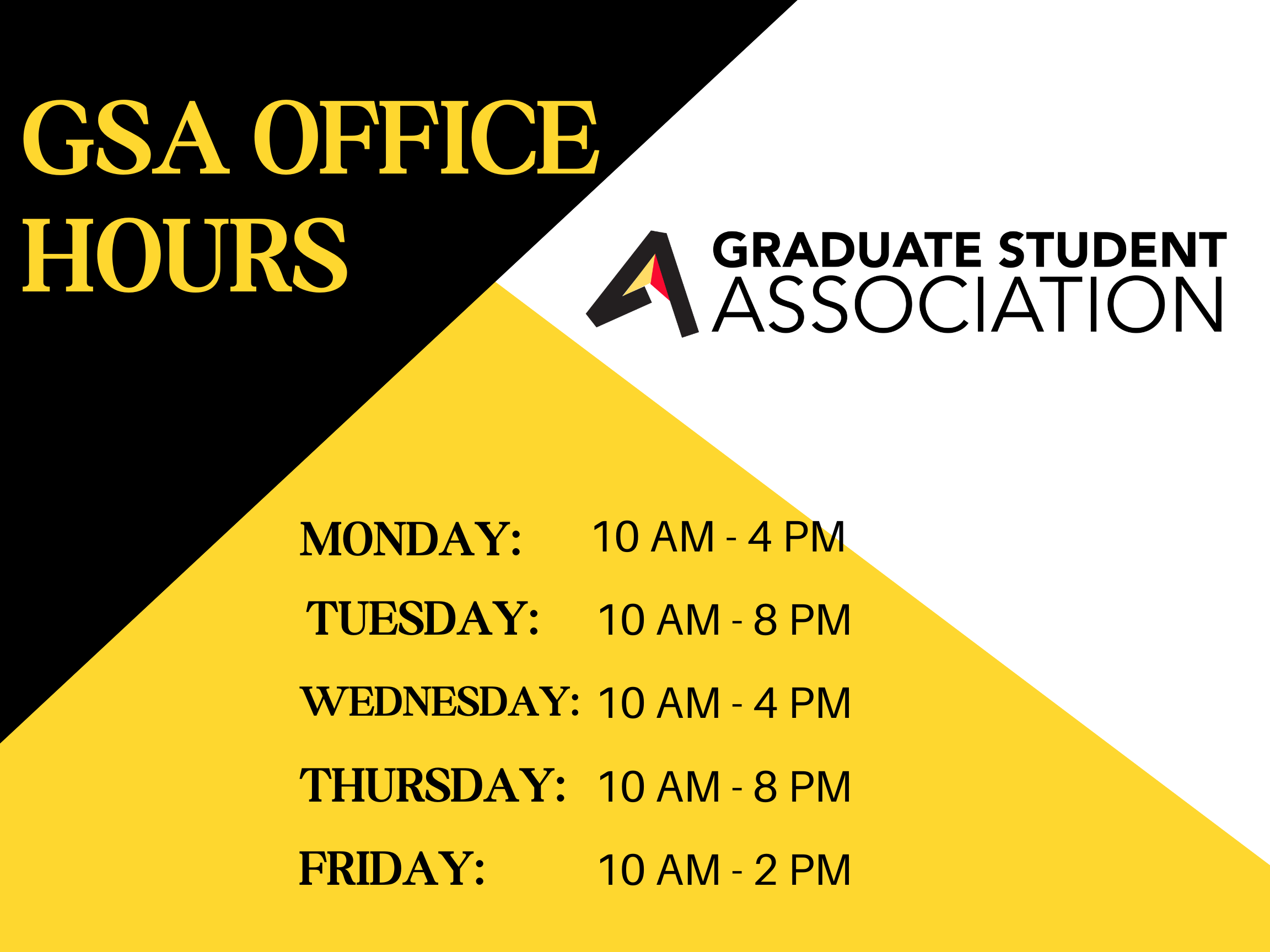 Here are the office hours for the GSA office:
