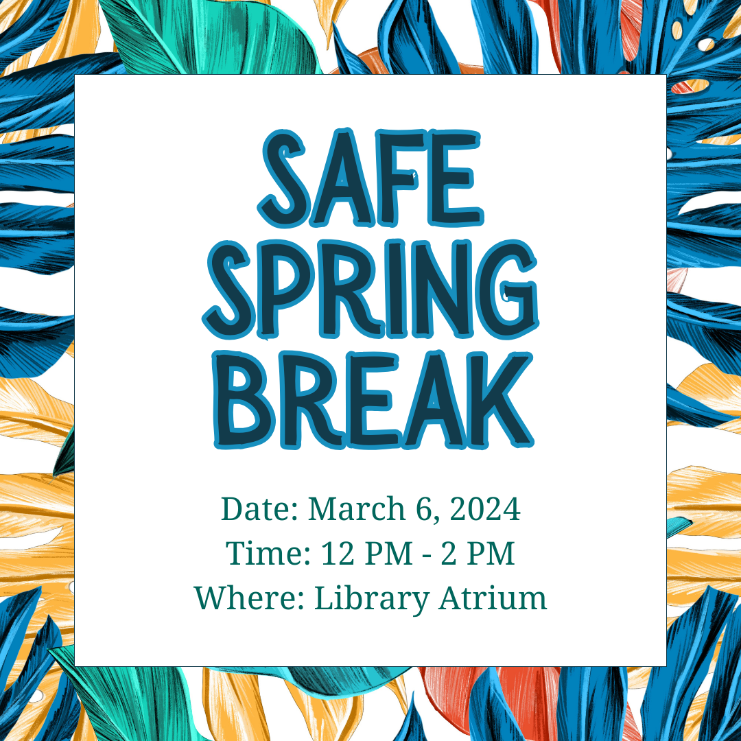 The Office of Health Promotion will be hosting our annual safe spring break event, providing students with an opportunity to learn about prevention and safety in preparation for the break. The event will include trivia, activities, food, and giveaways!