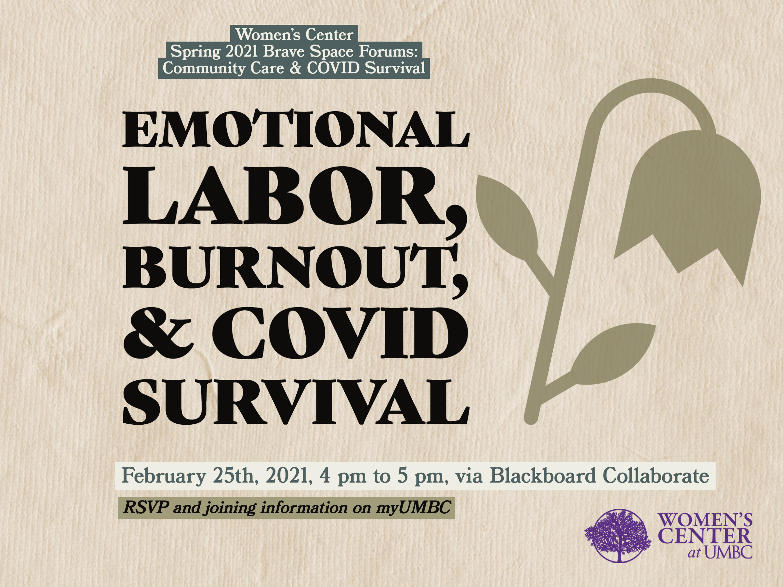 For our upcoming Brave Space Forum on Emotional Labor, Burnout, & COVID Survival (2/25 at 4pm), we want to collect data on the UMBC community's own mental health and stress levels! Results from this assessment will only be used to inform our discussion. This form is anonymous and is not collecting any identifying information.