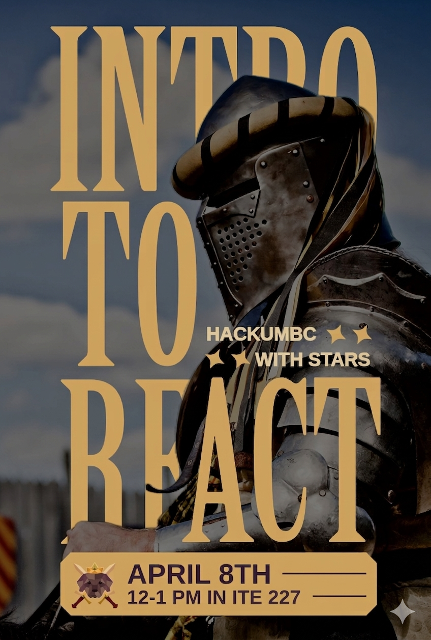 hackUMBC is teaming up with STARS to bring you an Intro to React workshop! It's the perfect opportunity to get hands-on experience with one of the most popular front-end libraries out there!