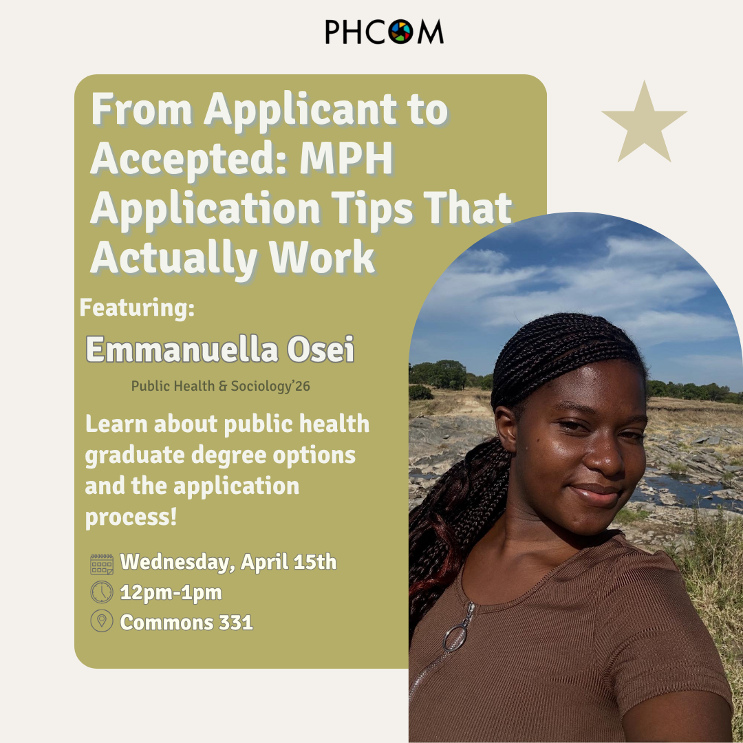 Hey everyone! This Wednesday, we will be hosting a grad school informational session with Emmanuella Osei!