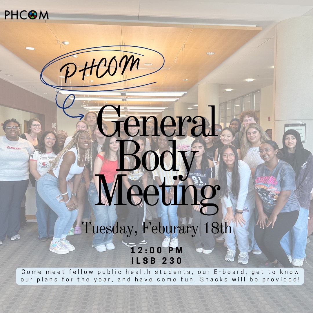 Join us for our first GBM of the spring semester on Tuesday, February 18th from 12:00 p.m. to 1:00 p.m. at ILSB 230. We will introduce our E-board, play games, and have snacks. See you there!