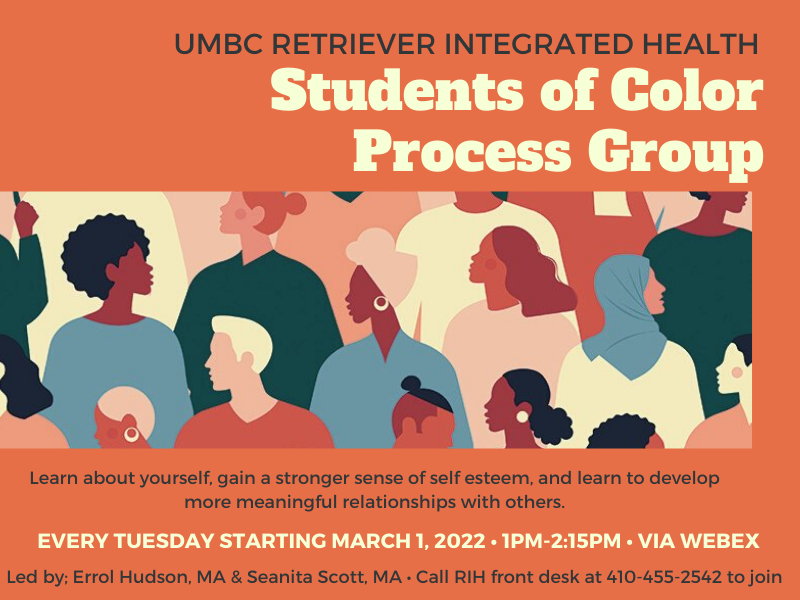 Students must be located in the state of MD during group time. To join, students should call RIH at 410-455-2542 to complete a triage and a pre-group screening appointment.