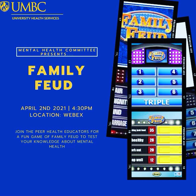Join the peer health educators for an evening of Family Feud for a chance to win a gift card to the UMBC Bookstore.