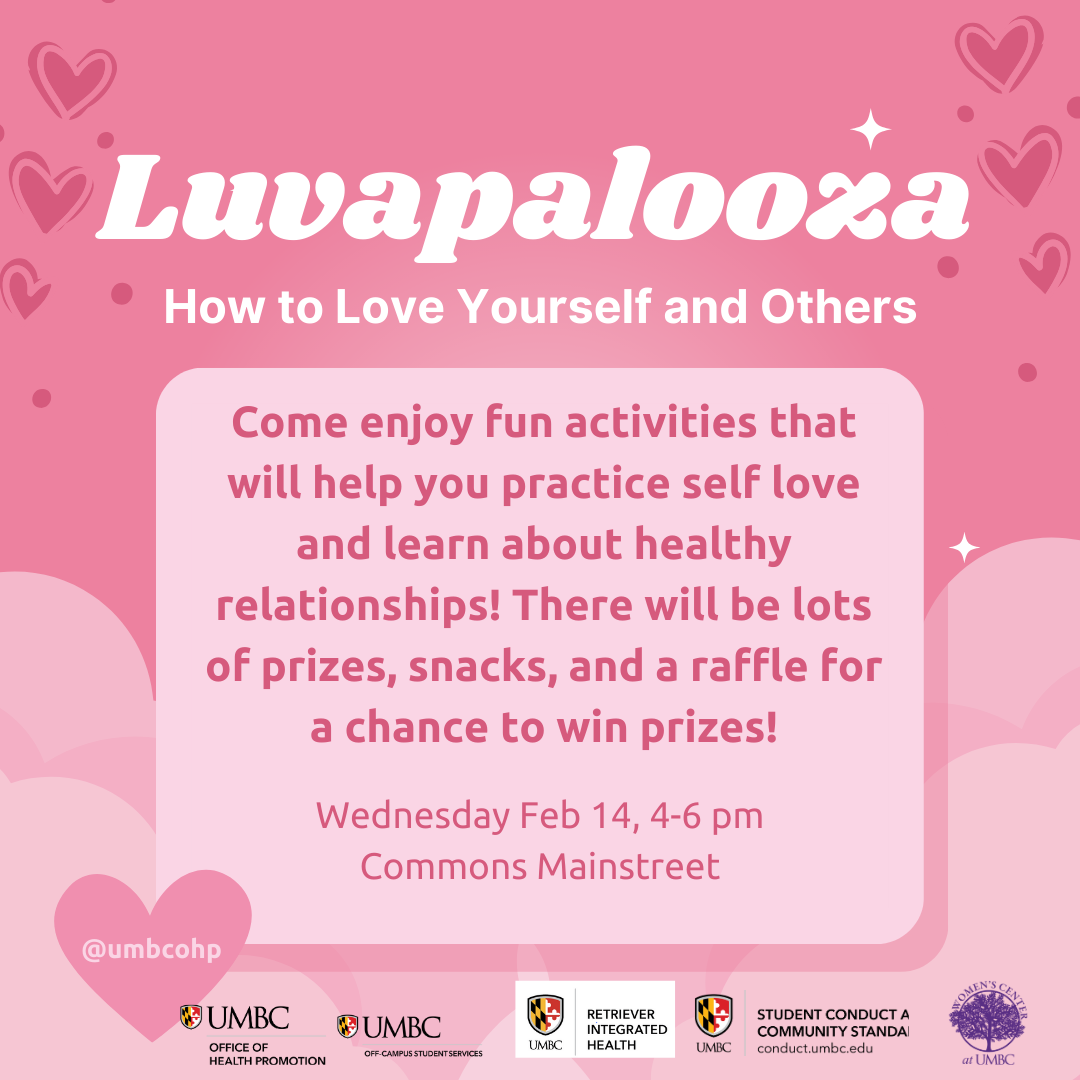 Come enjoy fun activities that will help you practice self love and learn about healthy relationships! There will be lots of prizes, snacks, and a raffle for a chance to win prizes!