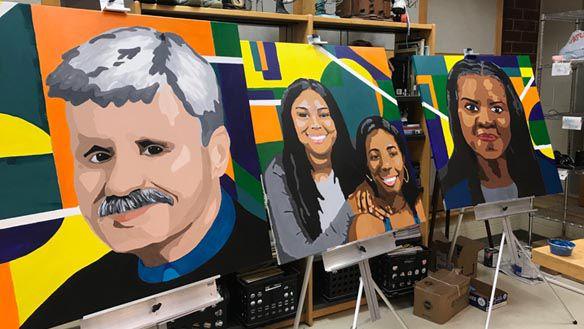 Nailah-Benã Chambers shown center painting, lower right