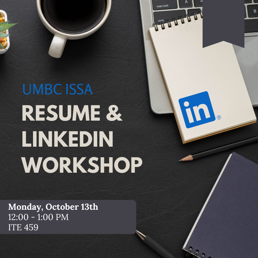 Ready to level up your professional profile? Join ISSA for a Resume & LinkedIn Workshop to learn how to craft a standout resume and optimize your LinkedIn for recruiters! Monday, October 13th from 12 - 1 PM in ITE room 459!