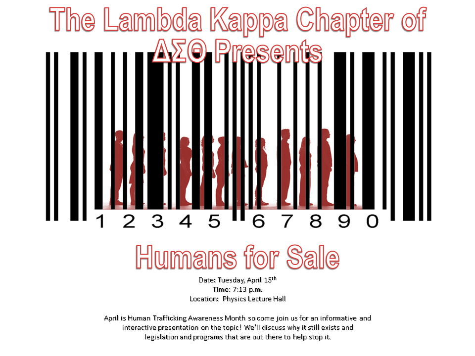 April is Human Trafficking Awareness Month so come join us for an informative and interactive presentation on the topic! We’ll discuss why it still exists and legislation and programs that are out there to help stop it.