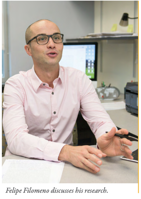 Maria Bernedo Del Carpio, Felipe Filomeno, Tania Lizarazo, Thania Muñoz, Carlos Romero-Talamas, and Yolanda Valencia’s research were featured in Inquiring Minds, UMBC’s Research Publication.