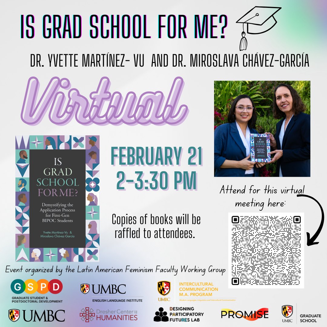 Join Dr. Yvette Martínez-Vu and Dr. Miroslava Chávez-García for an honest conversation about the graduate school process. They will discuss their book, "Is Grad School for Me?," a useful guide designed to help first-gen, low-income, students of color, and non-traditional students through the process of graduate school, from deciding to attend, selecting programs, applying, and thriving in higher education.