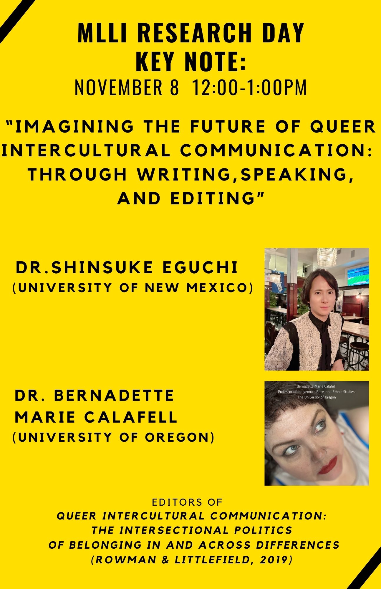 Join Dr. Shinsuke Eguchi and Dr. Bernadette Marie Calafell for a presentation, from their international and intercultural background, and academic interests, on what the field of queer studies can teach us about intercultural communication.