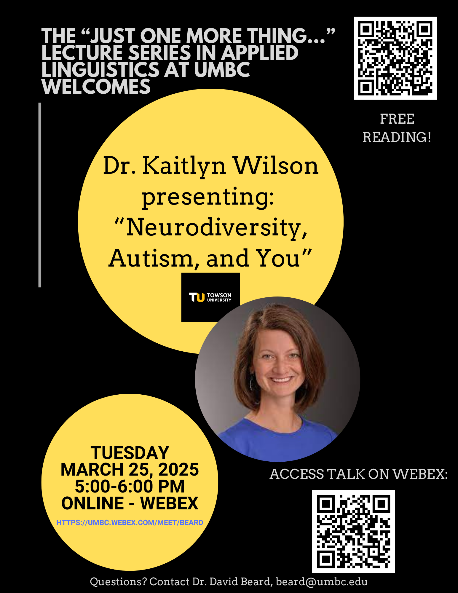 Dr. Kaitlyn Wilson will be joining us virtually from Towson University to present on "Neurodiversity, Autism, and You"