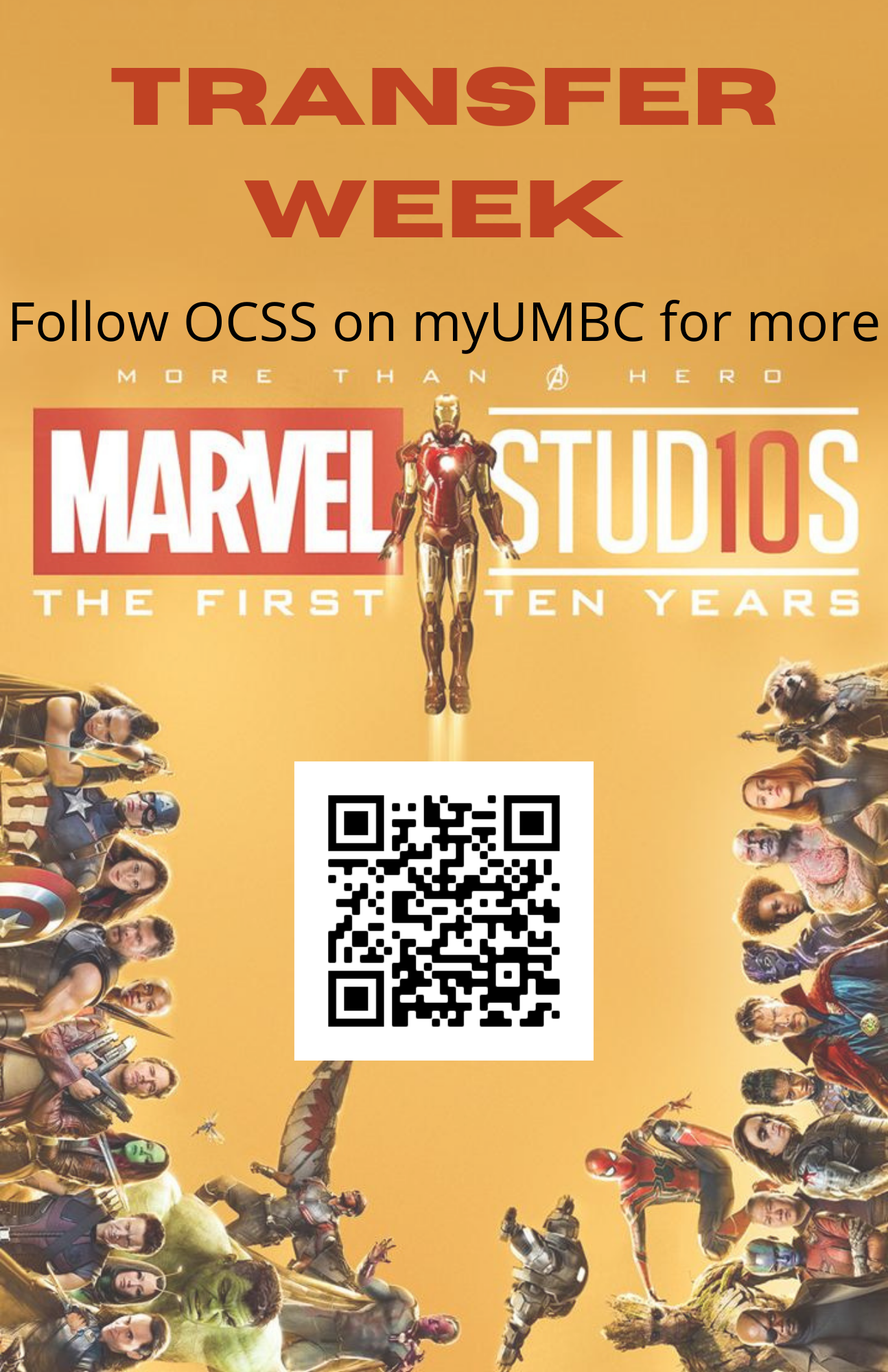 Transfers...Assemble! Join OCSS for Transfer Week October 18-22nd for Marvel themed events! We will have snacks, shirts, and plenty of in person and online events for everything Transfer related.
